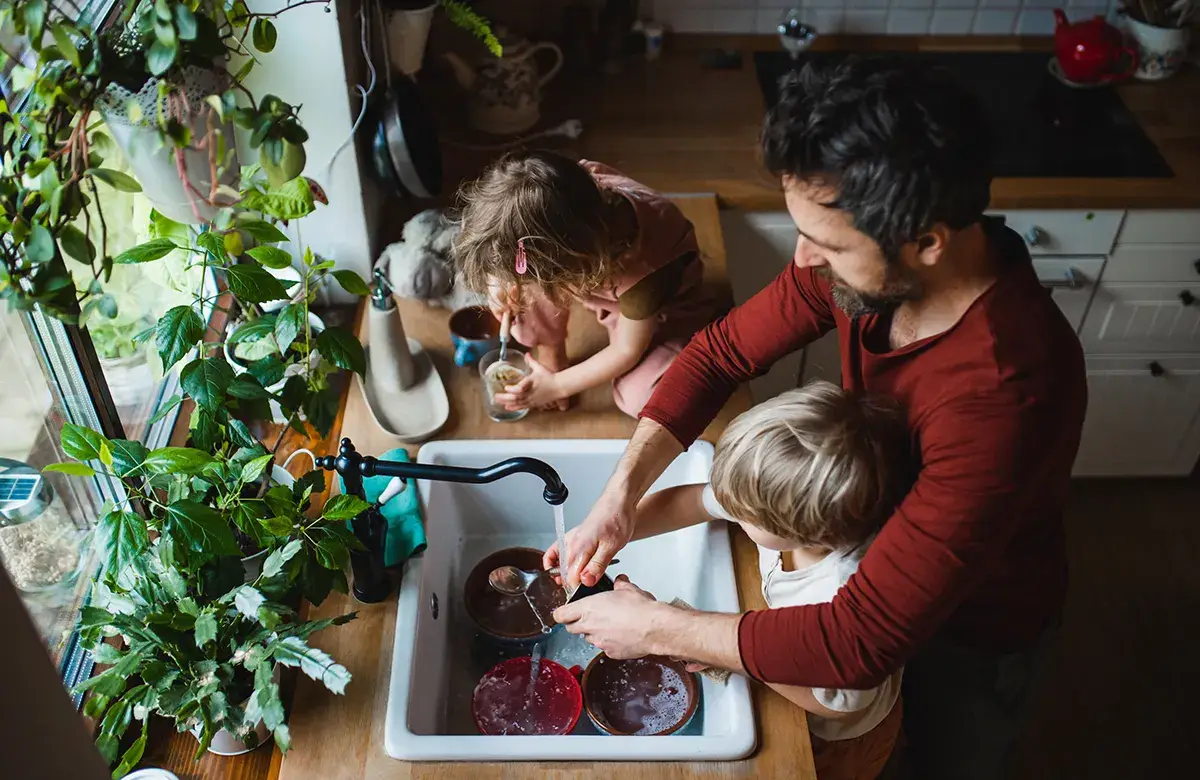 Once the issue is understood as a mismatch between production and peak demand, the most immediate way to stabilize the system is to reduce the water needed during those high-demand periods. Spacing out water use, upgrading fixtures, and using efficient appliances all slow the rate of water consumption. Extension guidance shows these changes can reduce household water use by up to 30 percent. In homes where low water pressure only appears during heavy use, that reduction can be enough to prevent the system from falling behind.